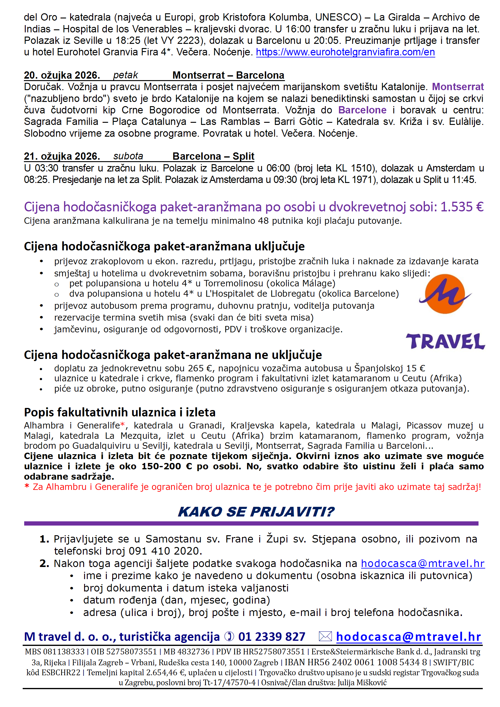 Radni dan: od 7:20 do 7:45 i od 18:45 do 19.15 sati
